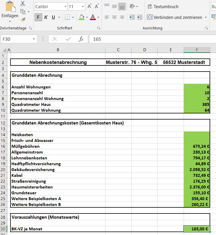 einfache Nebenkostenabrechnung in Excel