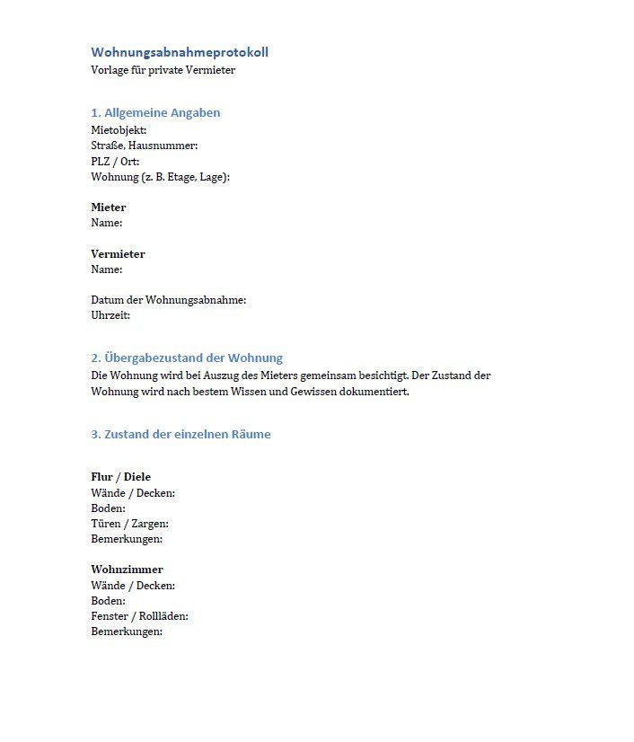 Wohnungsabnahmeprotokoll – Vorlage für Erstvermieter