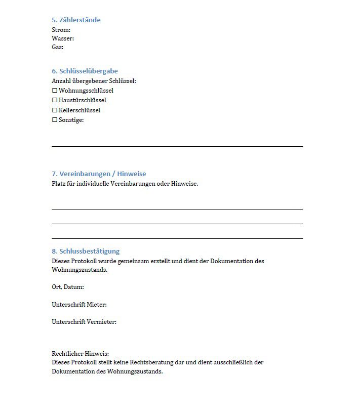 Das Protokoll ist bewusst klar und praxisnah aufgebaut und eignet sich insbesondere für Eigentümer, die erstmals vermieten oder ihre Abläufe strukturieren möchten.